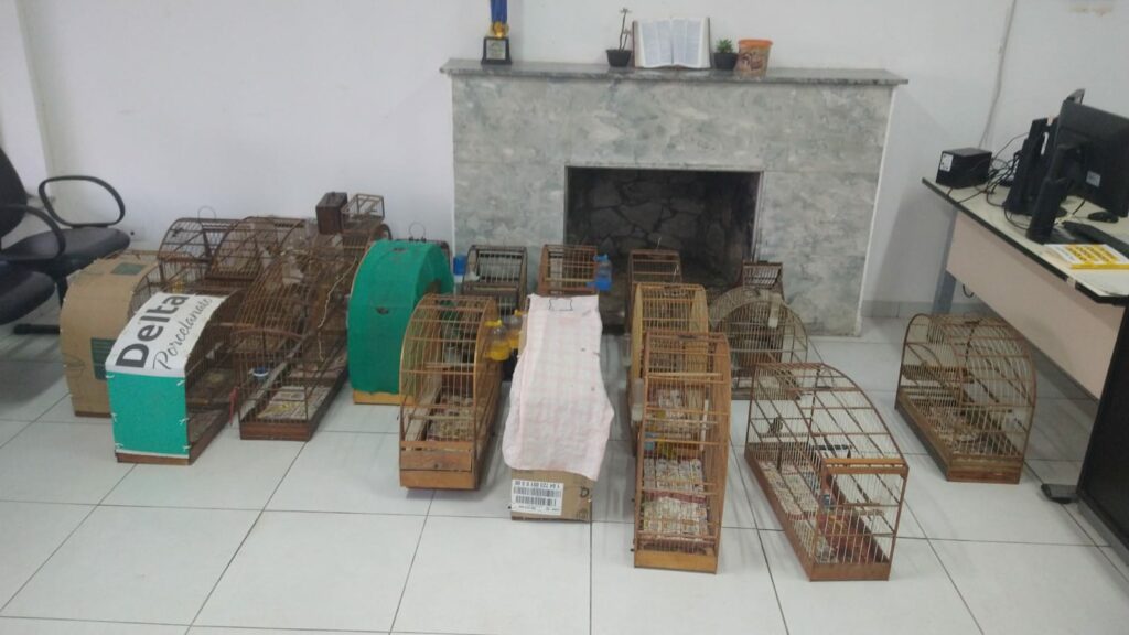 As 24 aves silvestres, 20 gaiolas e os materiais apreendidos, um alçapão e uma caixa de transporte, foram encaminhadas para a sede do 3º Pelotão de Polícia Militar Ambiental, onde aguardarão a destinação adequada.