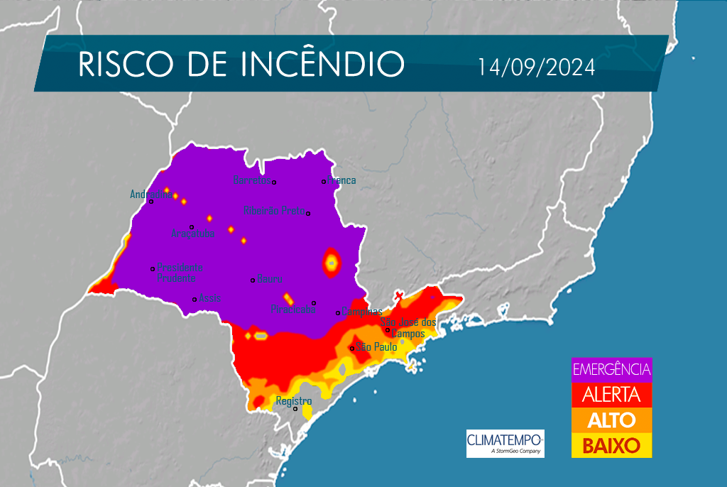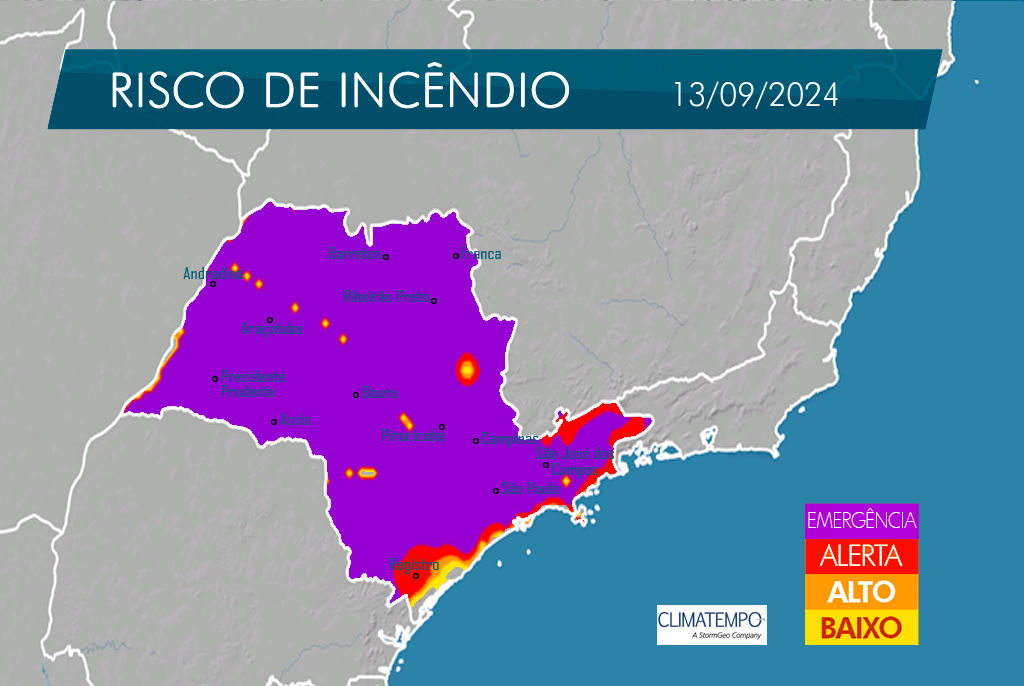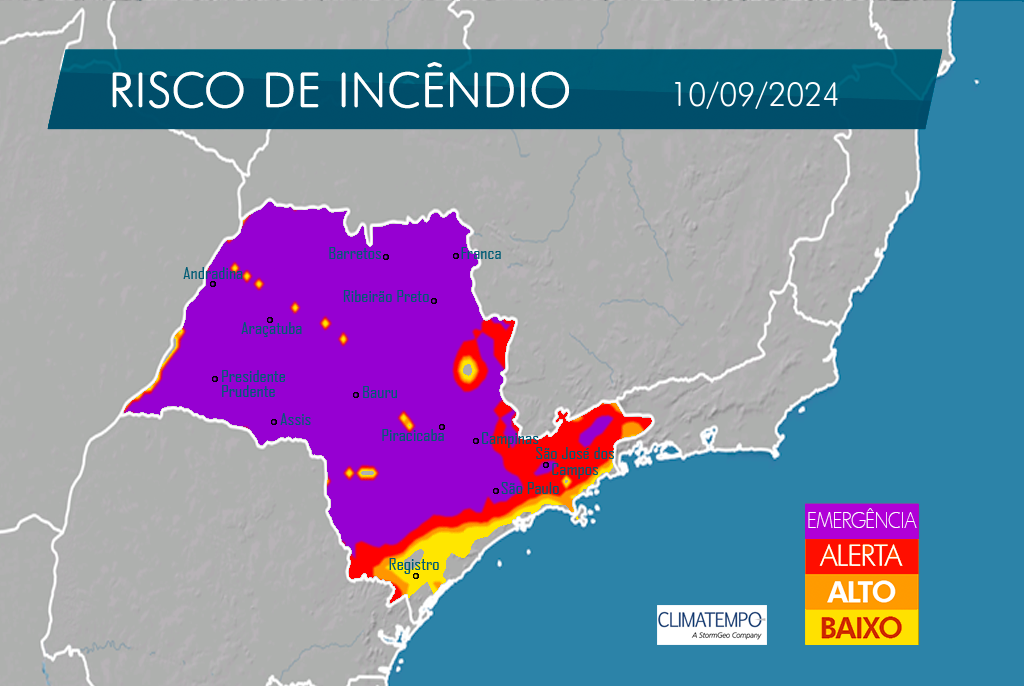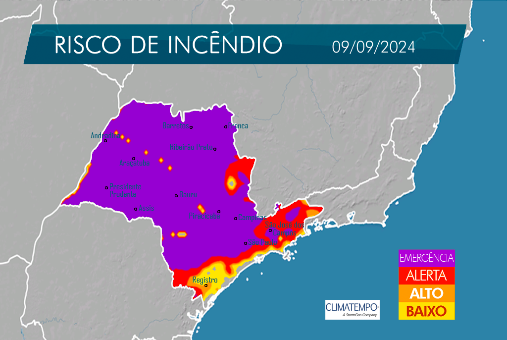 Bananal e São Luís do Paraitinga estão entre os municípios que tiveram o alerta renovado até terça-feira (10). O Mapa de Risco, uma das ferramentas tecnológicas que auxiliam a Defesa Civil no monitoramento de queimadas em vegetação durante o período da estiagem, indica a possibilidade de riscos de incêndios em todo território paulista.