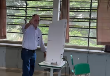 O candidato Ortiz Junior (Republicanos) votou na Escola Estadual Deputado César Costa, no distrito de Quiririm, por volta das 10h30.