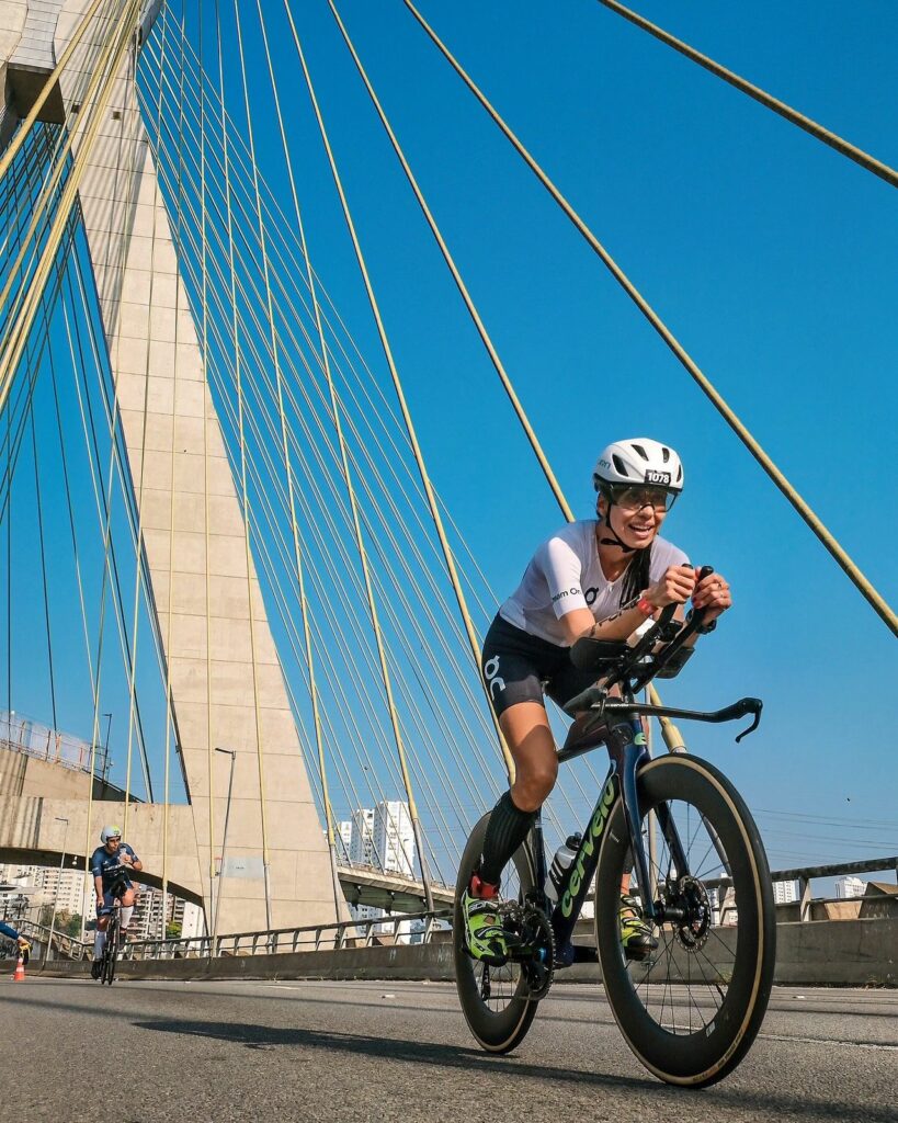 “Mais um 70.3 SP pra conta, com um dia pra lá de especial. Primeira na categoria, estreia da minha bike nova, vaga pro Mundial em Marbella, uma rede de amigos incrível e um monte de gente torcendo. Foi incrível!”