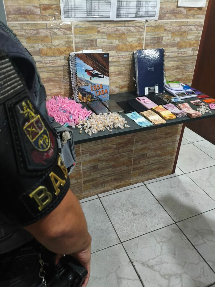 Ação do BAEP apreendeu drogas, dinheiro, celulares e materiais do tráfico no bairro Parque das Rosas.