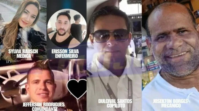 Na aeronave, estavam o comandante, o copiloto, um mecânico de aviões, uma médica e um enfermeiro. Todos eram colaboradores de uma empresa de táxi aéreo com sede em Salvador, na Bahia. As vítimas foram identificadas através da apuração do repórter Marcos Henrique da TV Aratu, afiliada ao SBT da Bahia.