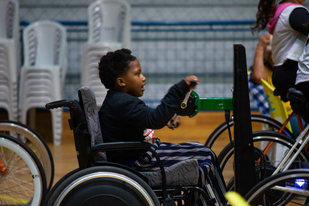 Também é possível se acomodar nas cadeiras disponíveis na plateia e colaborar pelo “pedal de mão”, ideal para diversão das crianças, idosos e pessoas com mobilidade reduzida, promovendo maior acessibilidade.