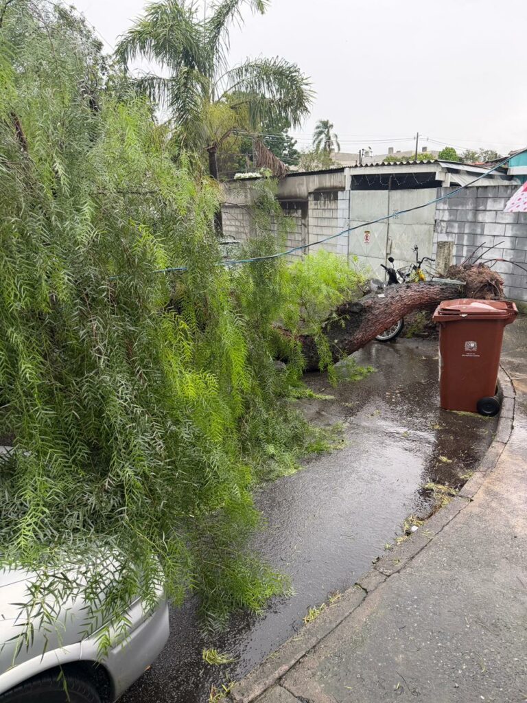 No bairro Monte Castelo, uma árvore caiu sobre o telhado de uma residência. Apesar do susto, a Defesa Civil informou que não houve feridos nem necessidade de interdição do imóvel.