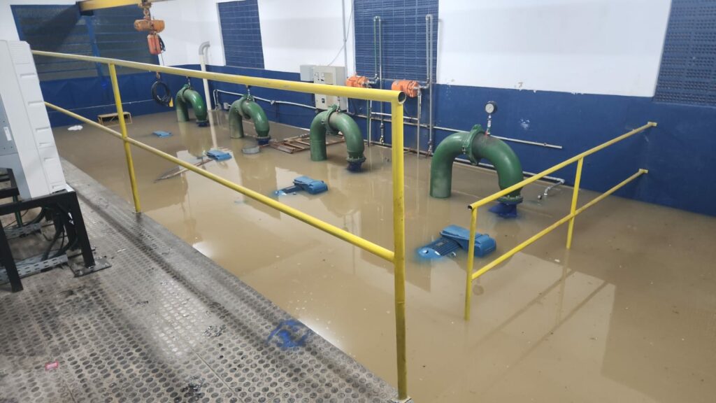 Técnicos da companhia trabalham na manutenção dos equipamentos submersos. Apenas as regiões abastecidas por poços artesianos seguem com o fornecimento normalizado.