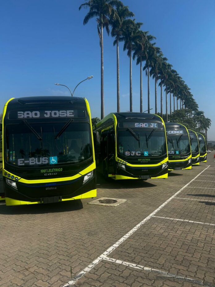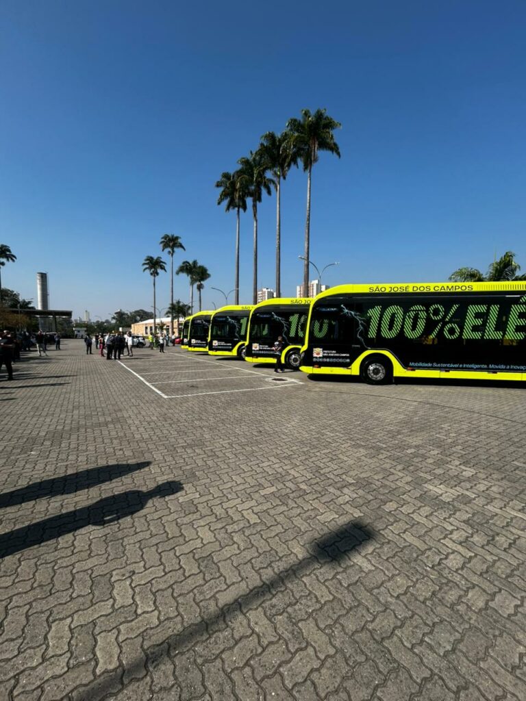 A Prefeitura de São José dos Campos apresentou nesta quarta-feira (1º) os cinco primeiros ônibus elétricos que vão integrar a nova frota do transporte público da cidade. Os veículos estão sendo exibidos no estacionamento do Centro de Formação do Educador Professora Leny Bevilacqua (Cefe).