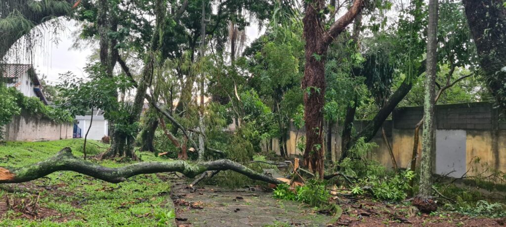 O monitoramento e a retirada de galhos continuam ao longo desta quarta-feira (28). A prefeitura orienta que a população utilize o canal 156 para novas solicitações de atendimento relacionadas aos danos causados pela chuva.