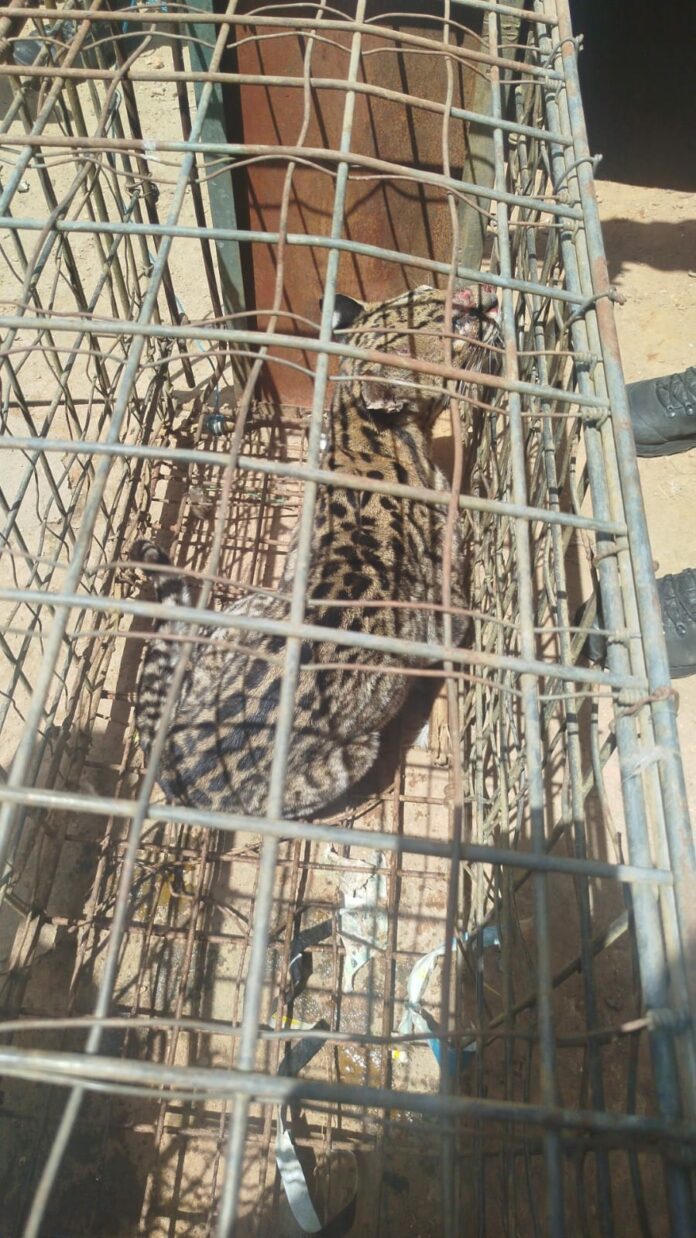 A equipe policial utilizou uma gaiola para capturar a jaguatirica e, em seguida, a libertou no Horto Florestal da cidade, garantindo que retornasse ao seu habitat natural.
