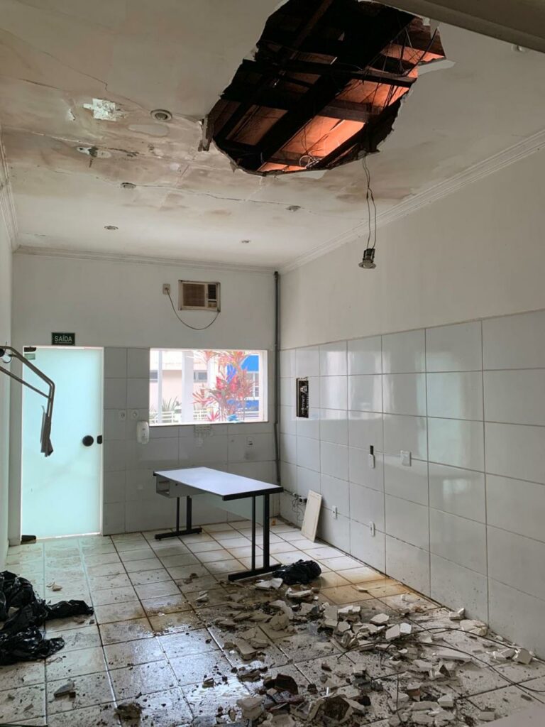 O centro médico informou também que a cozinha foi avariada por causa de um vazamento de grande volume de agúa e que, por causa disso, foi necessário tomar medidas de contenção e adequação do espaço.
