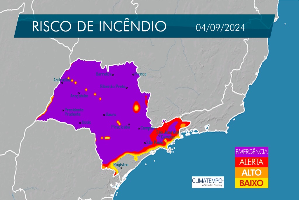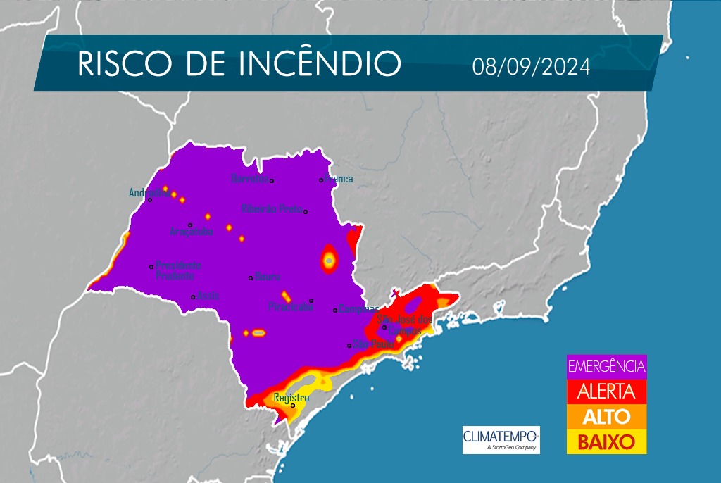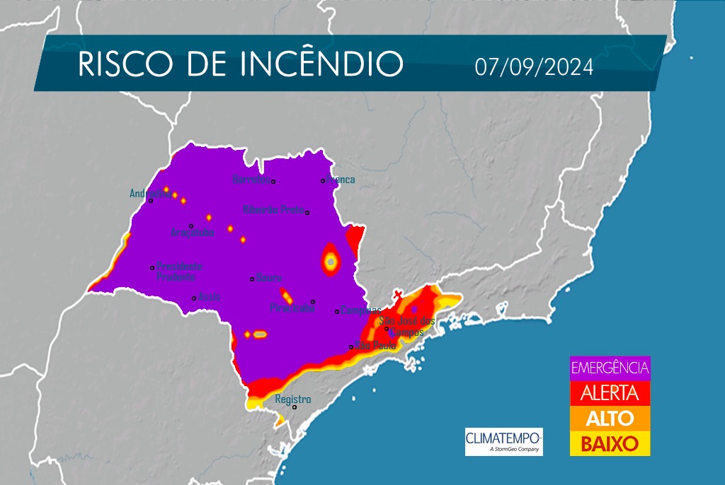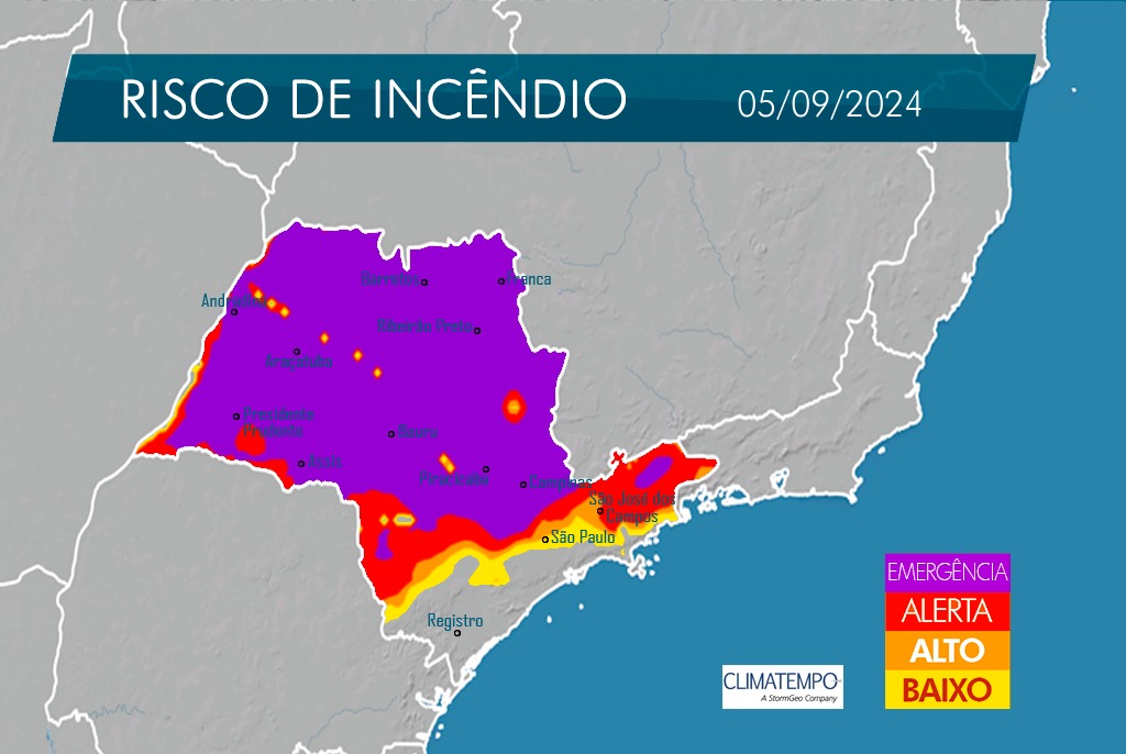 A Defesa Civil de São Paulo prorrogou até sexta-feira (6) o alerta de risco elevado para incêndios no Vale do Paraíba e em outras regiões do estado.