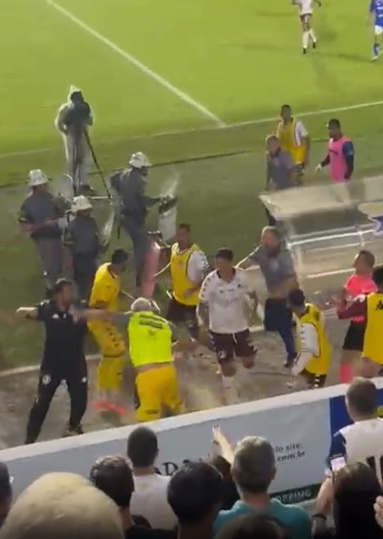 O tumulto começou aos 10 minutos de acréscimo, logo após o VAR anular o segundo gol da Águia e marcar uma falta para os visitantes.