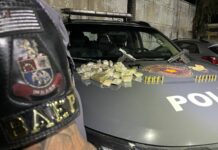 Neste momento, o suspeito saiu pela abertura, carregando duas sacolas que continham vários eletrônicos, como adaptadores de celular, uma TV e três filtros de linha de estabilização elétrica. Segundo a PM, o homem ficou assustado com a presença policial e foi detido em flagrante pelo crime.