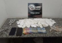 Na sacola, os policiais encontraram 406 pinos de cocaína, 150 pedras de crack, 132 porções de maconha, R$ 71 em dinheiro e um celular. Questionado, o suspeito confessou estar vendendo drogas na região.