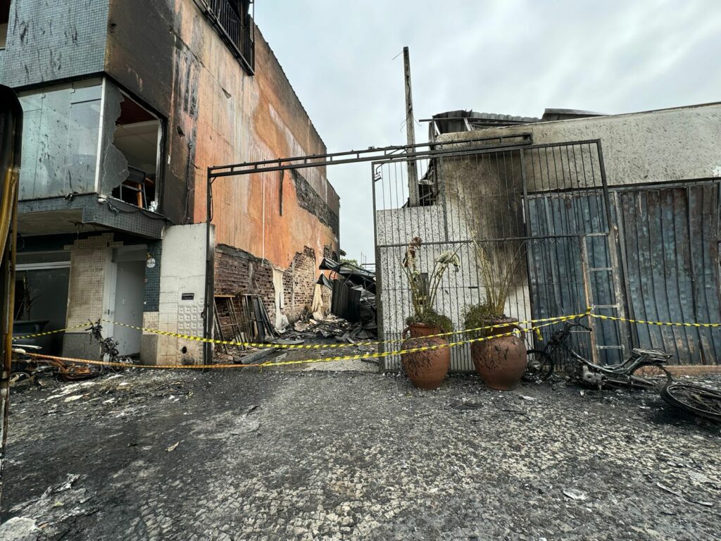 A Polícia Civil Científica realiza perícia no local para descobrir a origem do incêndio.