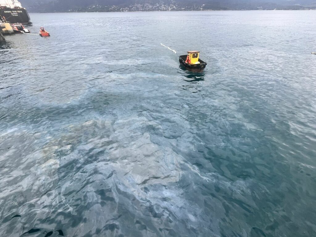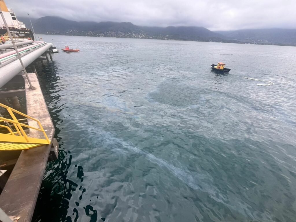 A Transpetro informou, em nota, que registrou o incidente em uma de suas linhas de transporte de produtos durante o abastecimento de um navio e que as equipes de prontidão agiram e o vazamento foi contido rapidamente. A operação foi paralisada imediatamente e a linha passou por reparos.