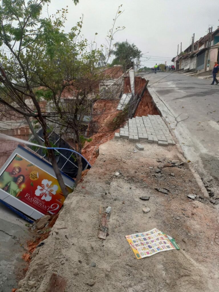 De acordo com a Defesa Civil do Estado, um muro de arrimo de uma obra que seria no imóvel desabou devido à tubulação de esgoto que foi rompida. Além disso, postes que estavam próximos ao muro também caíram, o que prejudicou o fornecimento de energia no bairro.