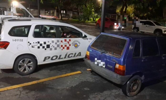 Durante a vistoria em um Fiat Uno, pertencente a um dos suspeitos, os agentes constataram irregularidades no emplacamento e no chassi. A checagem apontou que o carro usava outra placa e era produto de furto registrado em julho de 2019, na cidade de Cotia.