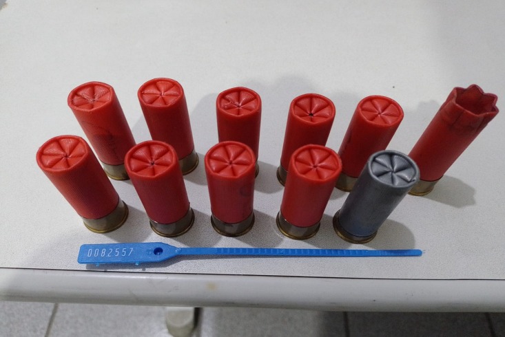 As equipes da Força Tática se deslocaram até o endereço e fizeram o cerco ao veículo. Durante a revista, os policiais encontraram, no porta-objetos da porta do motorista, uma sacola plástica com dez munições intactas e uma deflagrada, todas de calibre 12.