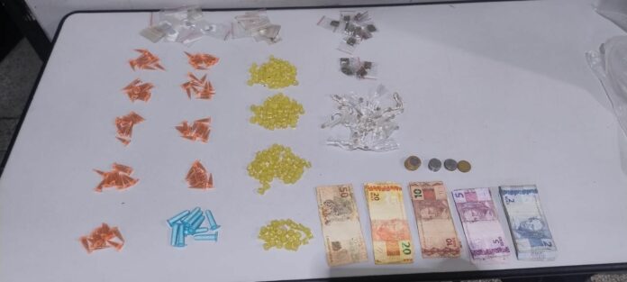 O homem foi alcançado e abordado logo em seguida. Durante a revista, os policiais encontraram uma variedade de entorpecentes e dinheiro . Ao todo, foram apreendidos 89 pinos de “space” (droga sintética), 17 porções de “dry” (variação da maconha), 14 porções de maconha comum e nove pinos de cocaína.