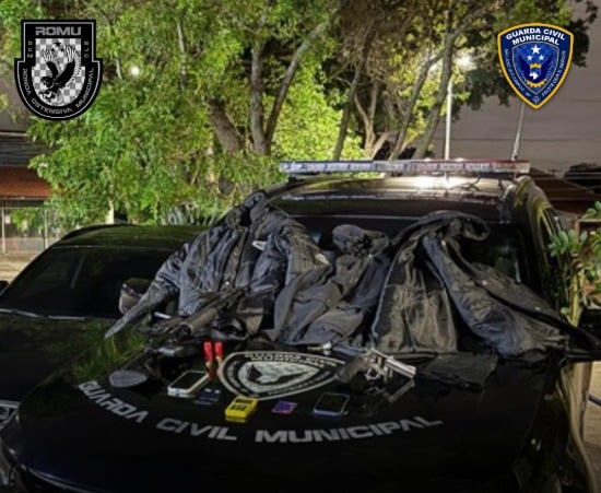 Com a dupla, os guardas apreenderam uma espingarda calibre 12 carregada, um revólver calibre 38 com munições intactas, o veículo usado no crime e outros objetos.
