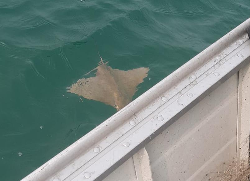A Polícia Militar Ambiental resgatou uma raia ticonha no mar de Caraguatatuba, Litoral Norte de São Paulo, no domingo (8).