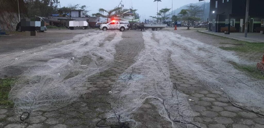 A rede tinha 400 metros, tamanho superior ao máximo permitido conforme a legislação pesqueira vigente. Também foram apreendidos outros materiais usados de forma irregular, o que configura crime ambiental.