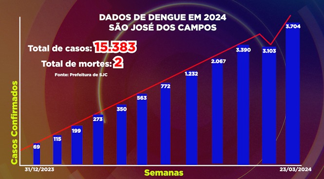 A Prefeitura de São José dos Campos decretou, nesta segunda-feira (25), estado de emergência e alerta epidemiológico contra a dengue. A cidade já confirmou 15.837 casos e duas mortes pela doença.