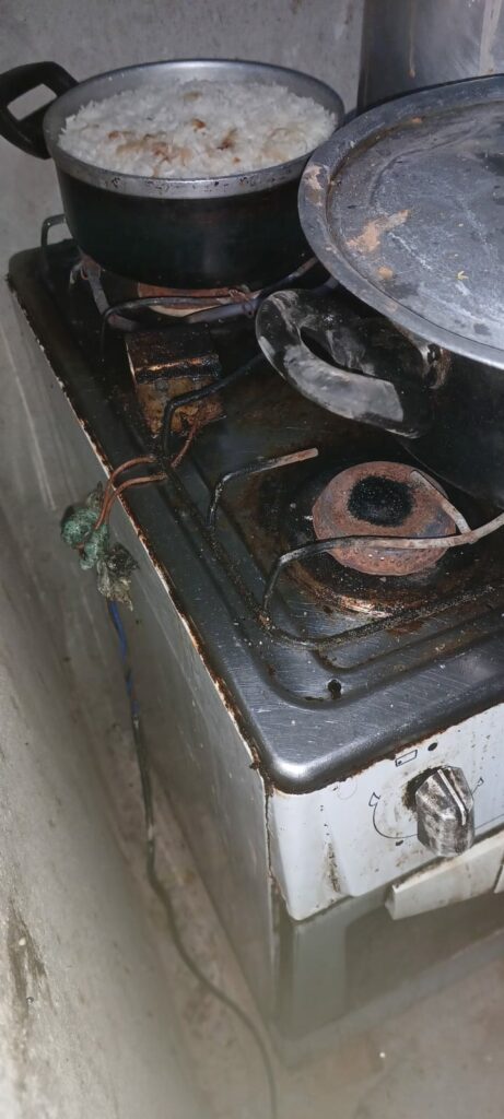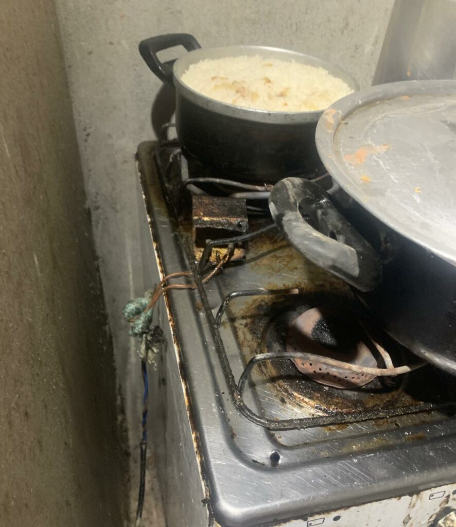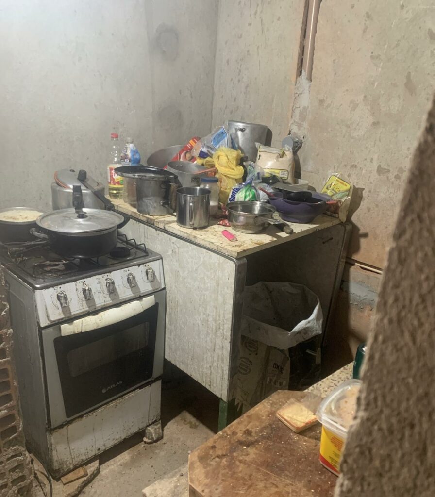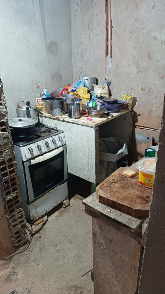 No alojamento também não havia local para armazenagem de alimentos, nem sequer uma geladeira.