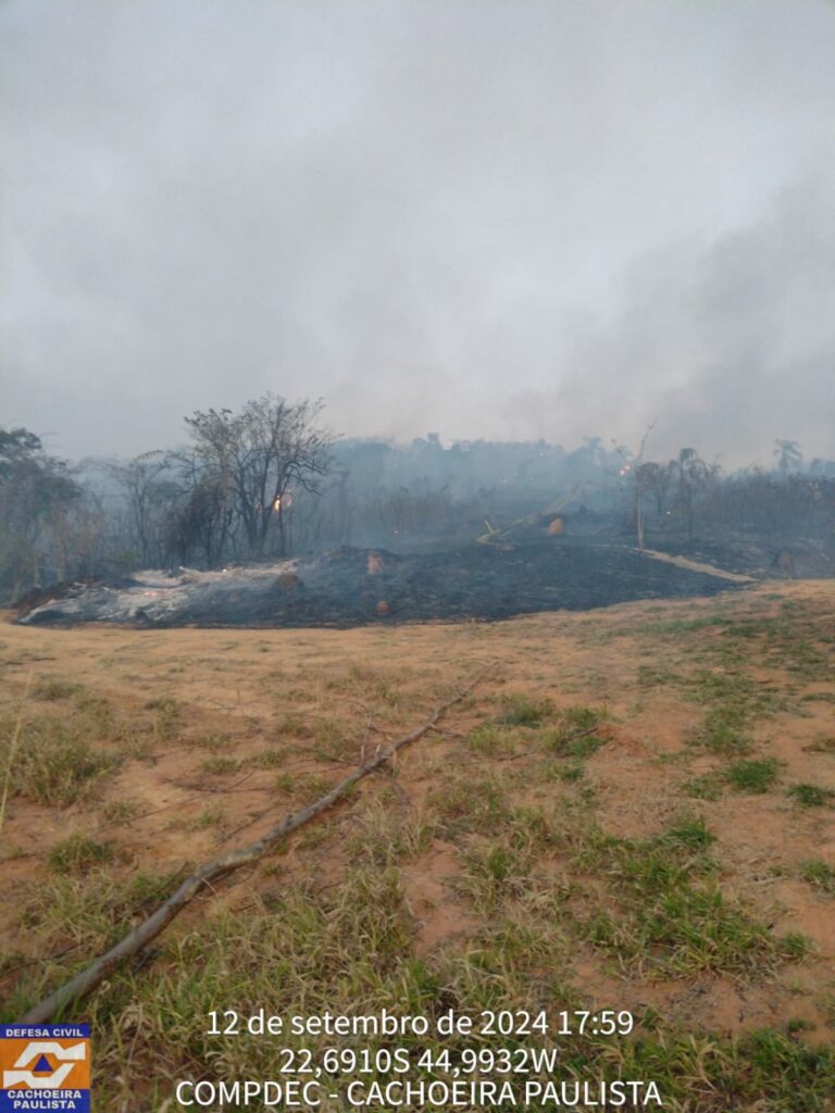 Em Cachoeira Paulista o incêndio atingiu uma Área de Preservação Permanente (APP) e uma área de vegetação natural na Rodovia dos Tropeiros (SP-068). O fogo começou por volta das 14h30 de quinta-feira (12) e a via precisou ficar interditada por cerca 3 horas. Os focos foram extintos e a rodovia liberada.
