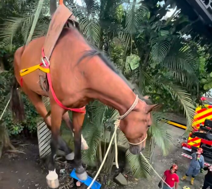 SÃO PAULO, SP (FOLHAPRESS) – Agentes da Defesa Civil de São Paulo e do Corpo de Bombeiros, com a ajuda de voluntários, resgataram neste sábado (11) um cavalo que estava em cima de uma laje em Peruíbe, cidade do litoral paulista atingida por fortes chuvas nos últimos dias.