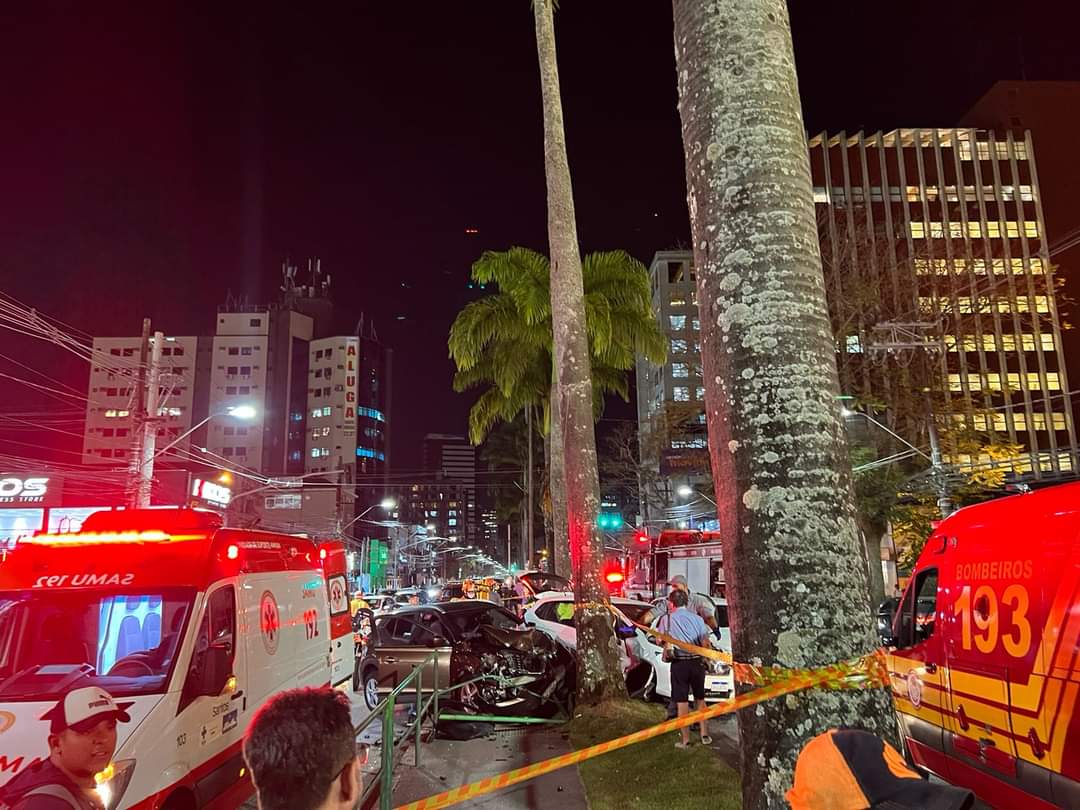 Três pessoas ficaram feridas após se envolverem em um acidente entre três carros, na Avenida Ana Costa, no bairro Encruzilhada, em Santos. O caso ocorreu no início da noite desta terça-feira (20), por volta de 18h, próximo à rua Pedro Américo.