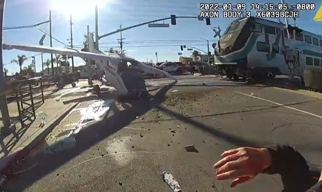 Agentes da polícia de Los Angeles, na Califórnia, salvaram um piloto, não identificado, de um avião segundos antes da aeronave ser atingida por uma locomotiva. O piloto teve que fazer um pouso emergencial, depois que um dos motores perdeu potência.