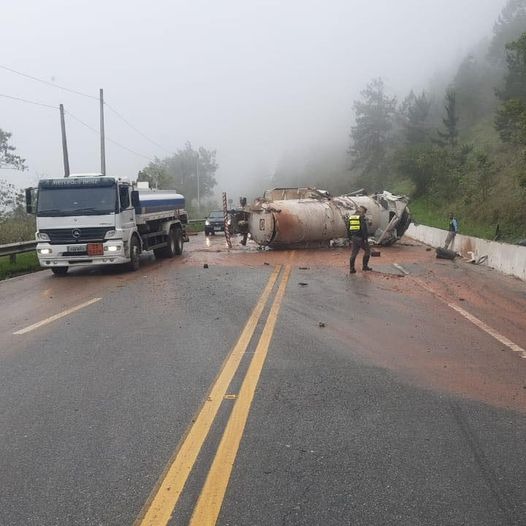 Apesar da gravidade do acidente, o motorista do caminhão não se machucou e o caminhão foi retirado da pista.