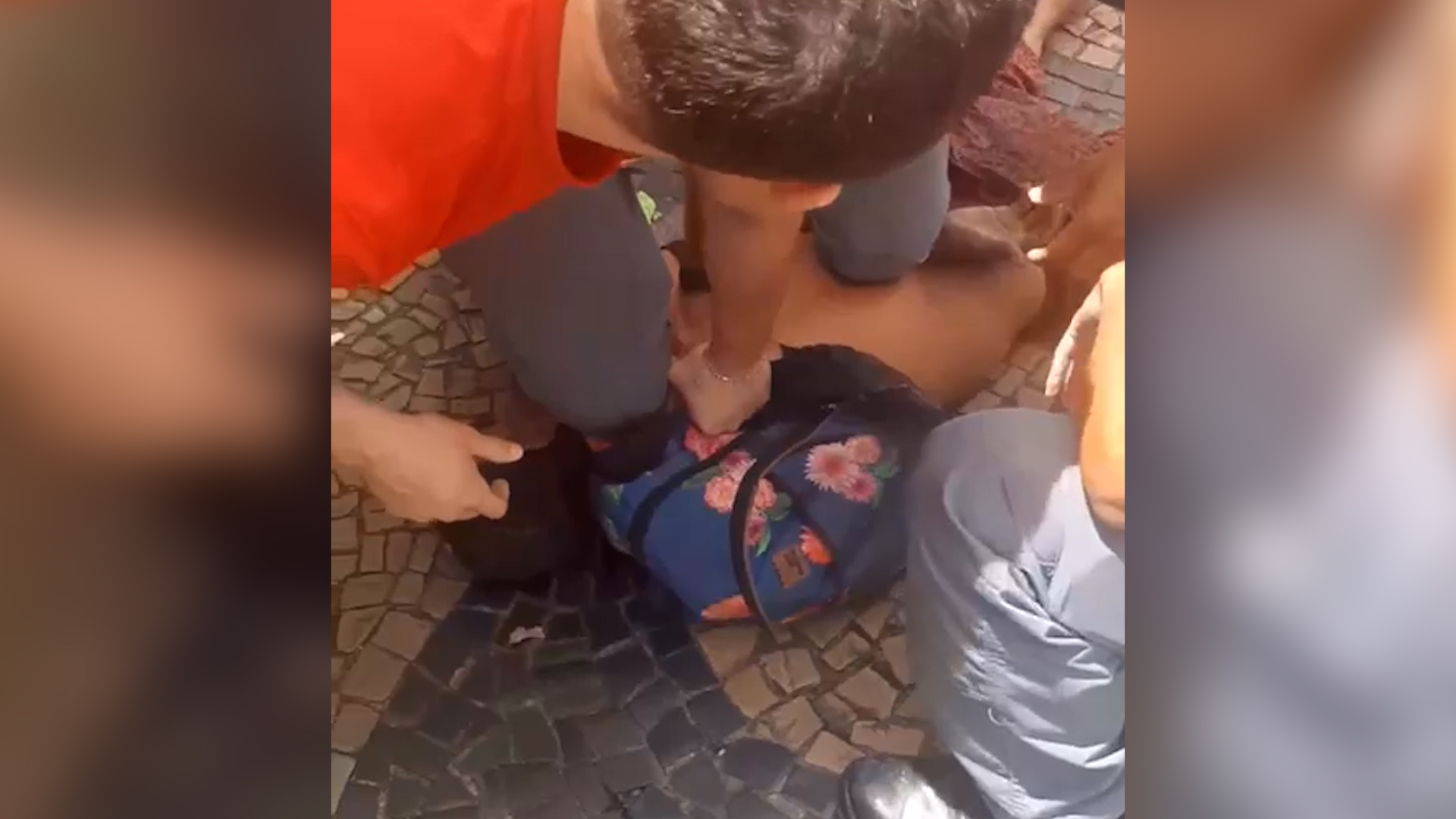 Na tarde desta segunda-feira, 26, um criminoso que havia acabado de roubar o celular de uma adolescente de 15 anos foi detido por populares que perceberam o assalto. O ocorrido foi registrado por uma das pessoas que estavam presentes no momento: