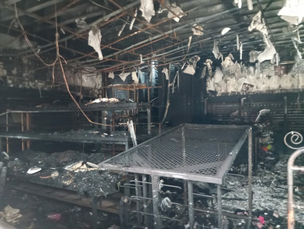 O incêndio atingiu uma área de aproximadamente 200 metros quadrados. Produtos, móveis e a fachada da loja foram destruídos.