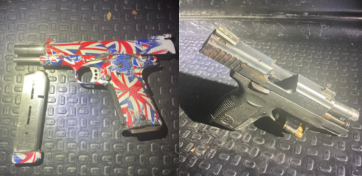 Com os criminosos, foram localizadas duas pistolas, sendo uma de cor preta e outra camuflada.