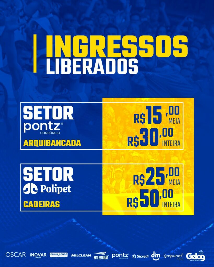 Os valores dos ingressos são de R$ 30 para as arquibancadas e R$ 50 para as cadeiras. De acordo com o clube, os ingressos gratuitos limitados serão disponibilizados para crianças de até 7 anos e apenas para o setor de arquibancada, acompanhados de um responsável e com documento com foto.