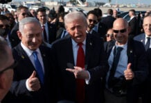 Ele foi recebido em um tapete vermelho no aeroporto Ben Gurion pelo primeiro-ministro israelense, Binyamin Netanyahu, e pelo presidente Isaac Herzog. O americano participou de um sessão no Parlamento de Israel, onde foi ovacionado.