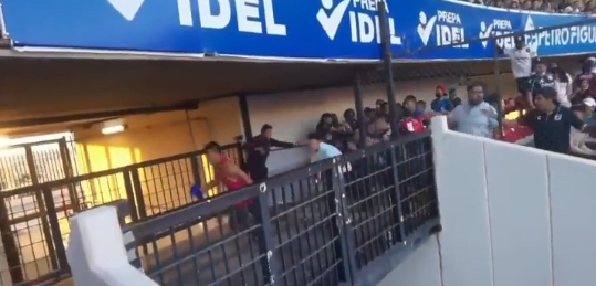 Uma das imagens mostram que um segurança abriu a grade onde estava a torcida do Querétaro, facilitando a briga com os torcedores do Atlas.pic.twitter.com/ID7ehuZBaz