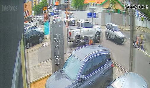 Imagens de câmeras de segurança mostram o momento da batida, indicando que a motocicleta seguia em alta velocidade ao atravessar o cruzamento. O motorista da caminhonete permaneceu no local e prestou socorro à vítima.