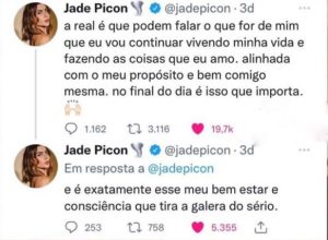 Jadoca respondeu dizendo que podem falar o que for que ela continuará vivendo e focando no seu propósito.