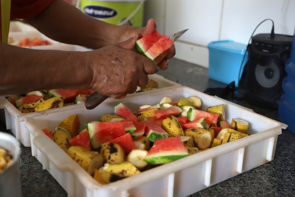 A rotina no Bosque começa cedo: por volta das 6h, servidores já iniciam o corte das frutas, e às 7h o café da manhã é servido. “No calor, quanto mais cedo, melhor, para evitar fermentação dos alimentos”, explica Gabriela.