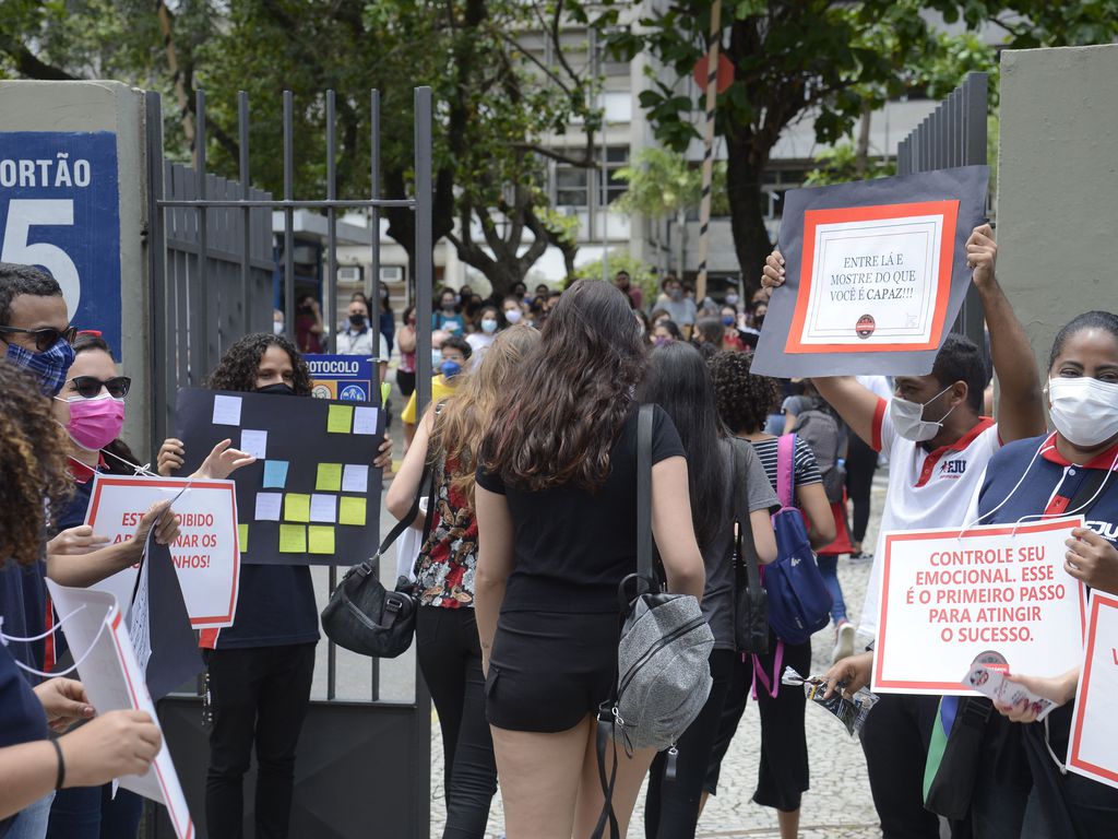 Estudantes chegam para o primeiro dia de prova do Enem 2021.