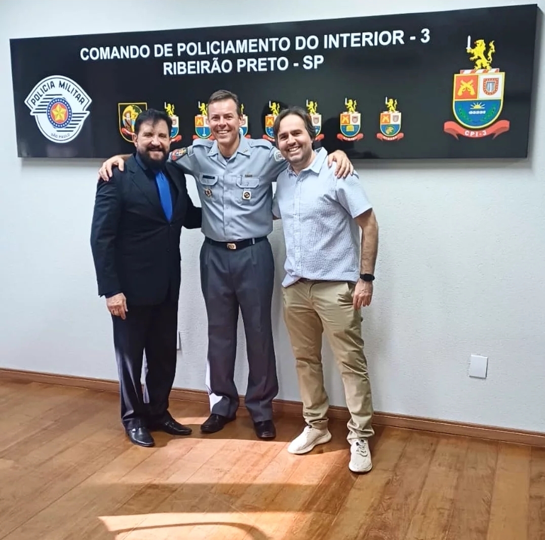 | CVO Zacarias Pagnanelli, Coronel da PM Rodrigo Quintino e Godi Júnior, CEO do Cartão de Visita News |