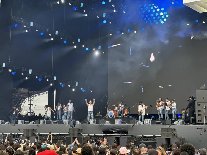 O show também teve espaço para ousadia. Surpreendeu ao transformar “Toxic”, clássico de Britney Spears, em uma versão densa, com guitarras carregadas e vocais intensos. Logo depois, arrancou sorrisos ao soltar “Bye Bye Love”, dos Backstreet Boys,uma reverência divertida à boyband americana que se apresentaria mais tarde no festival.
