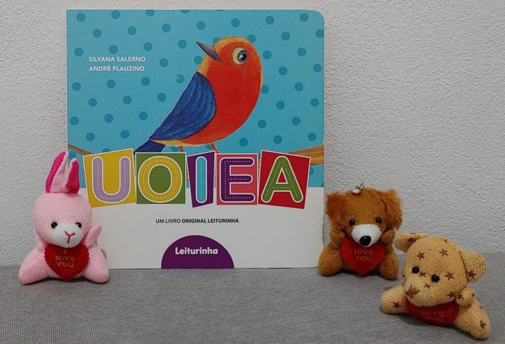 - AEIOU-UOIEA – Um convite lúdico ao mundo das letras e sons, com ilustrações de animais brasileiros. As crianças aprendem brincando — de frente pra trás e de trás pra frente.