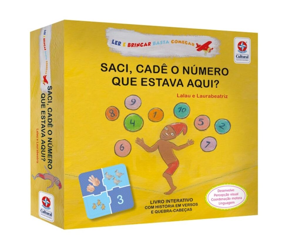 - Saci, cadê o número que estava aqui? – Uma aventura divertida em que o Saci, travesso como sempre, ensina os números de 1 a 10 enquanto esconde e revela pequenas surpresas a cada página.