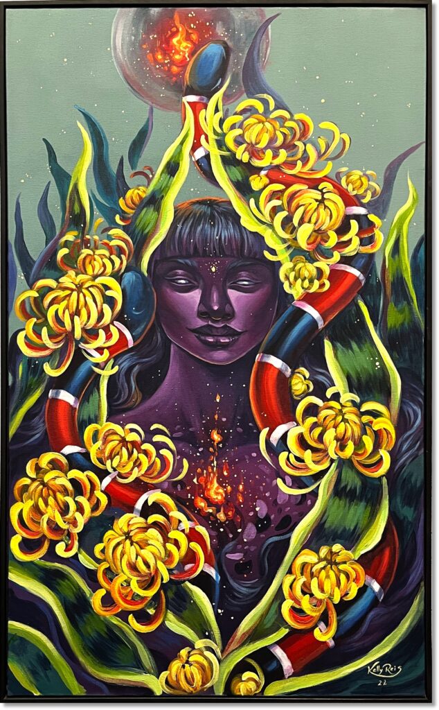 A partir do dia 12 de julho, o público que frequentar o SESC Madureira, no Rio de Janeiro, terá a oportunidade de mergulhar em uma exposição única, que retratará diversas religiões do mundo, de modo especial do Brasil e de outros países da América Latina, pelo olhar singular da artista visual Kelly S. Reis. Por meio da arte, ela nos convida a refletir sobre essa diversidade religiosa, com ênfase nas tradições indígena, afro-brasileira e africana. É a mostra Pagã, que reunirá mais de 40 obras, entre pinturas, mural e instalação, em um espaço onde arte, fé e resistência caminharão lado a lado.