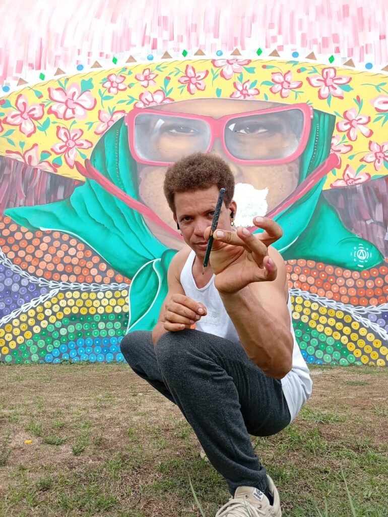 Aos 36 anos, o muralista acumula 26 anos de atuação nas artes visuais e na música. Iniciou na música aos 6 anos e ingressou nas artes visuais aos 9. Desde então, estruturou uma linguagem baseada em cores saturadas, contraste acentuado e domínio de superfícies monumentais. A cultura popular pernambucana orienta a maior parte da produção.