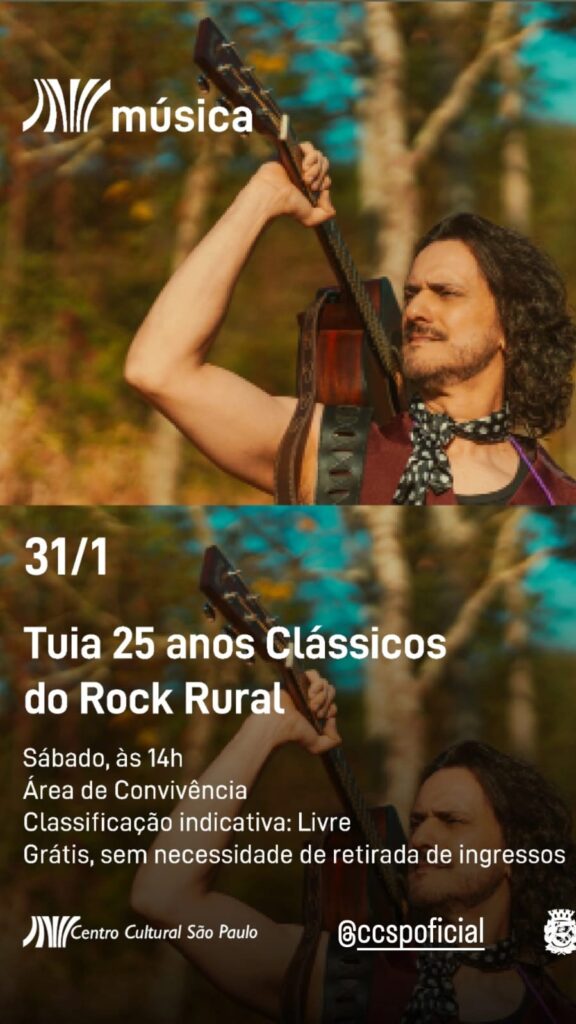 Com mais de 25 anos de trajetória, Tuia sobe ao palco do Centro Cultural São Paulo no dia 31 de janeiro, para comemorar sua carreira em um show que reafirma sua importância dentro do folk brasileiro, também conhecido como Rock Rural.